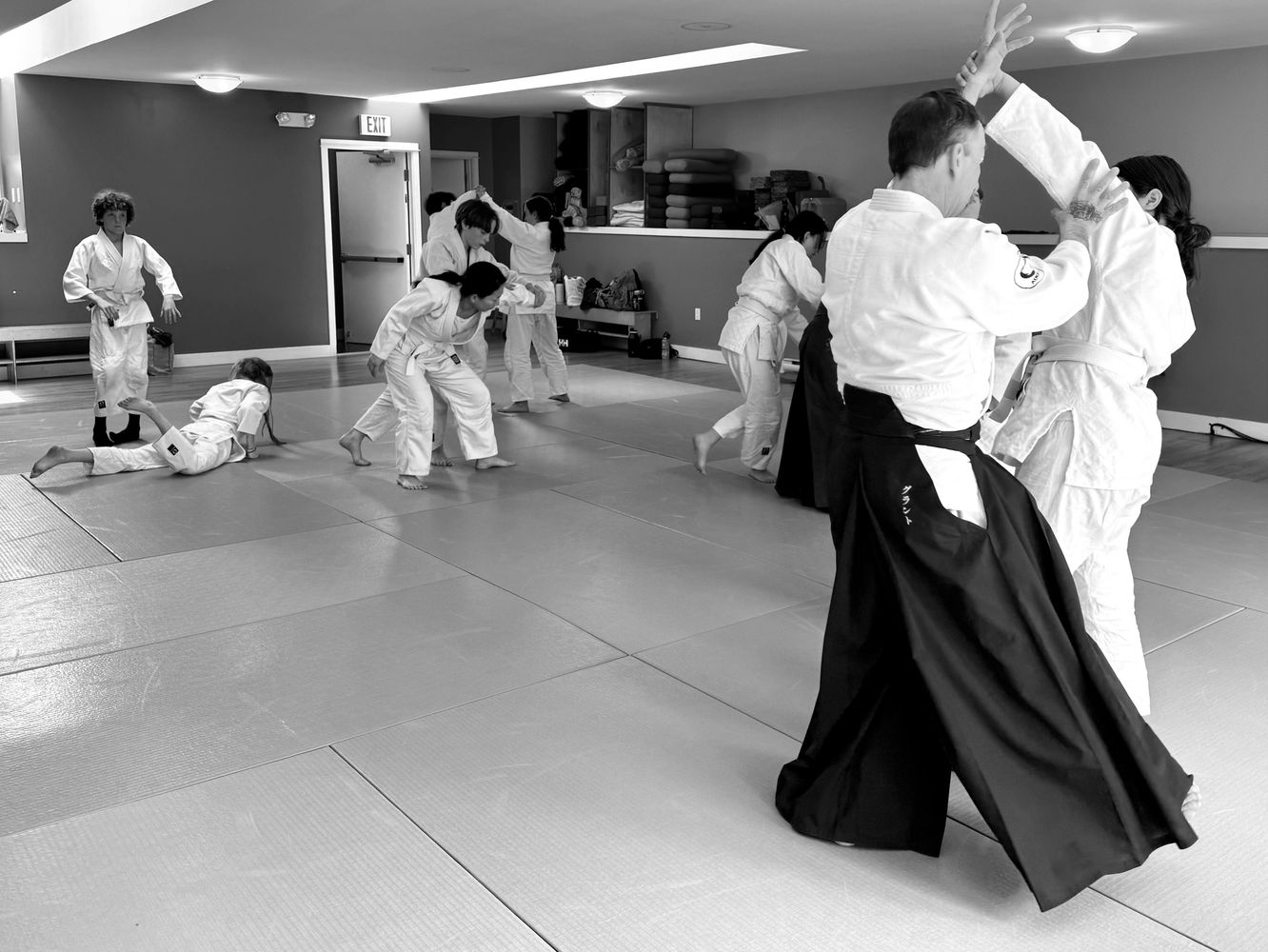 Aikido is a fun way to get to know yourself and others through practice. It encourages mindfulness through the power of breath and natural body movement. Learn about aikido and our training philosophy.